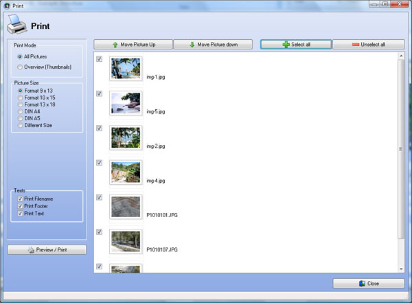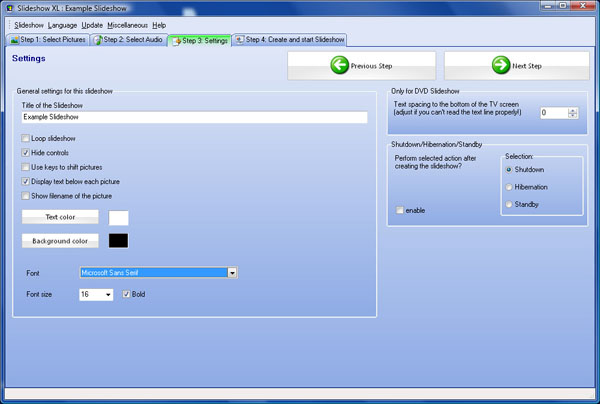The shareware version is limited to 10 pictures and a shareware message is displayed in the generated Slideshow.